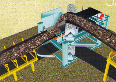 ZX型帶式輸送機轉向裝置源自中國礦大,經過多年的廣泛應用,該項技術已處于成熟應用階段。轉向裝置的應用范圍很廣,尤其適合煤礦進下彎曲的運輸巷道中,可以使帶式輸送機實現水平轉彎、上下轉彎、組合轉彎、上下變坡運行(在上下變坡運行中可以實現壓帶功能,防止產生飄帶)。實現同樣的功能,原需要多臺皮帶機搭接方式進行輸送,現采用該裝置一機便可達到換向轉向目的,可實現減少設備投資、節省能源、減少安裝工作量,減少電控操作等。